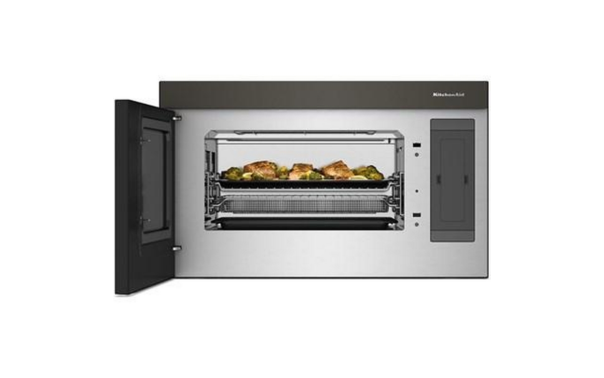 KitchenAid over-the-range microwave oven features Air Fry technology, Convection technology, 950-watt of power and a total capacity of 1.1 cu. ft.