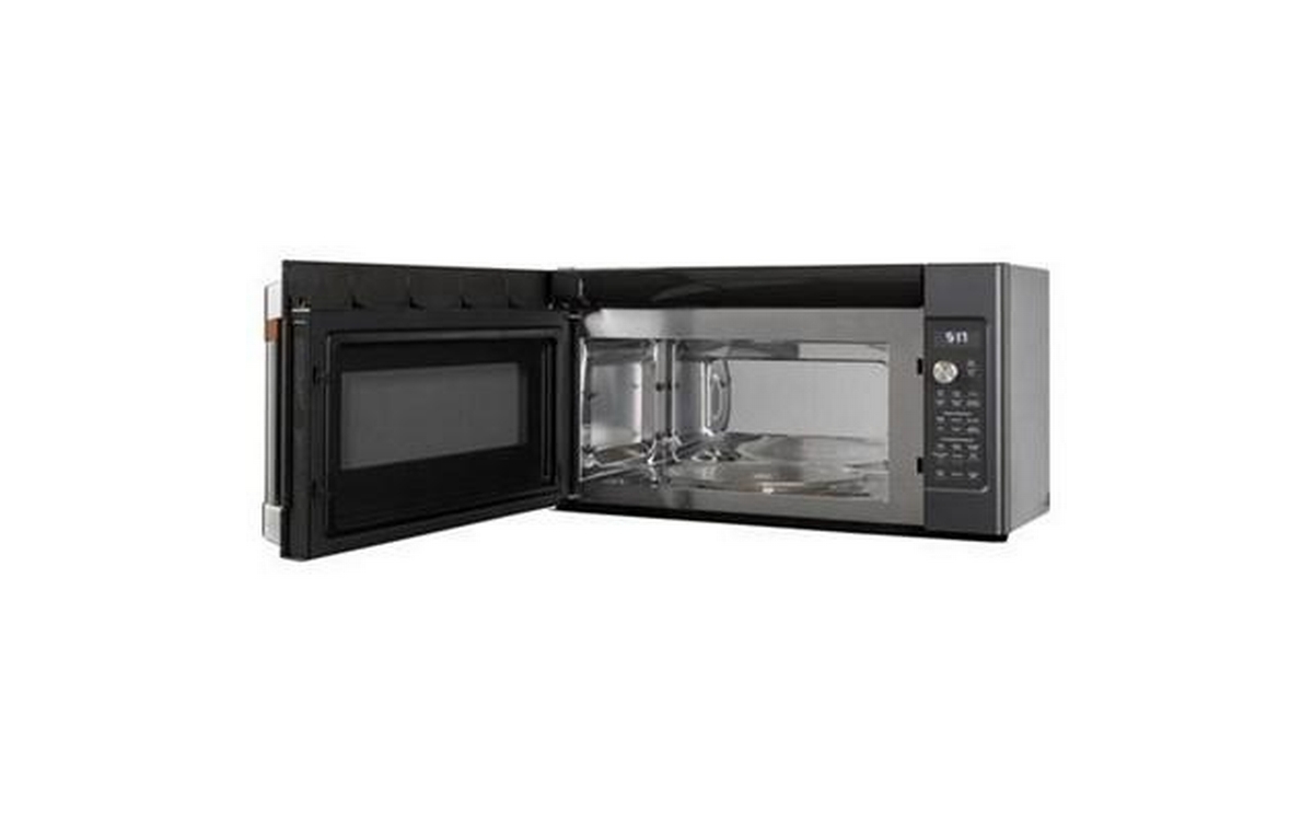This GE Café™ convection over-the-range microwave oven features 10 power levels, a 300 CFM fan, convection and a 1.7 cu.ft. capacity. This microwave offers the Air Fry function to make your favorite "fried" foods healthy and crisps without using oil for frying. Simplify your cooking steps by using Chef Connect to automatically activate vents and surface lights when a range element is turned on, as well as sync your microwave and range clocks.