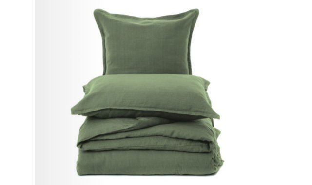 Muslin Olive duvet cover Double-queen size duvet cover: 88' x 90' King size duvet cover: 104' x 90' Decorative pillow shams sold separately 100% cotton muslin Zipper closure Machine washable and dryable Made in Portugal