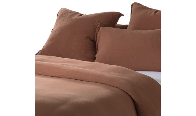 Brown Natural duvet cover Double-queen size duvet cover: 88' x 90' King size duvet cover: 104' x 90' Decorative pillow shams sold separately 100% cotton muslin Zipper closure Machine washable and dryable Made in Portugal