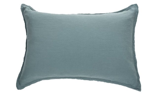 Muslin Steel Blue decorative pillow shams Queen size pillow shams: 20' x 30' King size pillow shams: 20' x 36' Sold as a set of 2 Filler sold separately 100% cotton muslin Machine washable and dryable Envelopp closure Made in Portugal