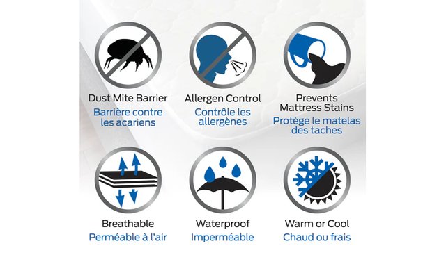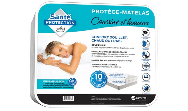 Comerco's luxurious cushioned mattress protector provides 100% waterproof and breathable protection for your mattress. Reversible for comfort adapted to each season, it guarantees a clean and hygienic sleeping surface. The set includes 2 pillow protectors with Air360° technology and a 10-year stain guarantee. The cushioned surface ensures comfortable sleep, while the stretchy skirt fits mattresses from 10 to 20 inches.