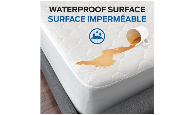 COMERCO Reversible Mattress Protector, 100% Waterproof, Cozy Comfort, Breathable, 10-year warranty against stains on the new mattress and on the mattress protector, includes 2 pillow protectors for your comfort and protection. - 10 Year Warranty against stains on new mattress (conditions apply). - 10 Year Warranty against stains on mattress protector. - 100% Waterproof and Breathable: Maintaining a clean and hygienic sleeping surface by eliminating the build-up of dust mites, mold, mildew,fungus and bacteria. BONUS BED SET: 2 PILLOW PROTECTORS with AIR360° filtering band that allows air to circulate while blocking contaminants (Twin – 1 pillow protector only). - Reversible: Warm – Quilted top for winter / Cool – Polyester for summer. - Total Health Protection: allergens from dust mites, mold and mildew in your mattress and pillow can trigger health problems. - Generously cushioned surface for added sleeping comfort. - Deep Stretch Skirt: Stretches to fit 10”- 20” mattresses. - Waterproof Protection: Prevents you from losing the validity of your mattress warranty - Machine washable and tumble dry.