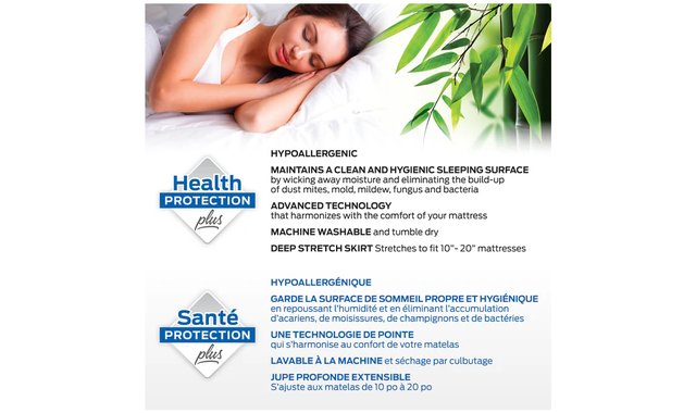 Comerco Bamboo Mattress Protector, 100% Waterproof, soft, Breathable, 10 Year Warranty against stains on new mattresses and on mattress protector, includes 2 pillow protectors for your comfort and protection. - 10 Year Warranty against stains on new mattress (conditions apply). - 10 Year Warranty against stains on mattress protector. 100% waterproof and breathable: maintaining a clean and hygienic sleeping surface by eliminating the build-up of dust mites, mold, mildew, fungus and bacteria. BONUS BED SET: 2 PILLOW PROTECTORS with AIR360° filtering band that allows air to circulate while blocking contaminants (Twin – 1 pillow protector only). - Natural comfort: Bamboo Jacquard Surface. - Total Health Protection: allergens from dust mites, mold and mildew in your mattress and pillows can trigger health problems. - Advanced technology that harmonizes with the comfort of your mattress. - Deep Stretch Skirt: stretches to fit 10”- 20” mattresses. - Waterproof protection: prevents you from losing the validity of your mattress warranty. - Machine washable and tumble dry.