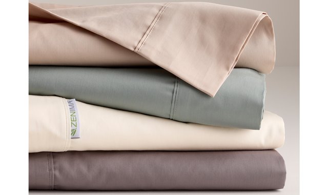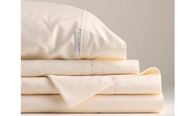Draps 100% coton organique. 300 Fils au pouce. Teinture naturelle à base d'enzymne de plante. Comprend 1 drap plat, 1 drap contour et 1 taie. Emballage dans une taie supplémentaire.