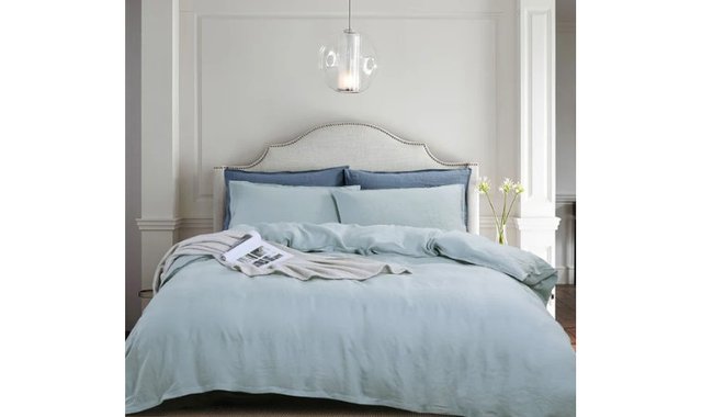 French Linen Soft Aqua Queen Duvet Cover Set 3 pcs