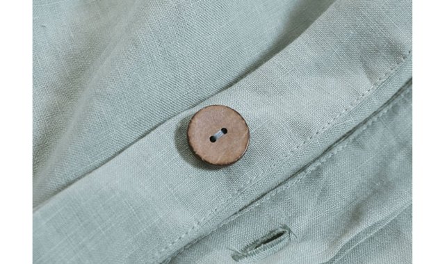 Our French linen duvet cover set adds color and elegance to your room with a perfectly dyed shade. Made from prewashed linen sourced from France, it’s extra soft and offers a natural "lived-in" look, with no ironing needed. The duvet cover features a hidden button placket for a clean finish, while the pillowcases have a housewife tuck to keep pillows in place. The double-stitched edge gives a polished, tailored look. Linen is a durable, eco-friendly material that’s naturally hypoallergenic, antibacterial, and fast-drying. It requires less water to cultivate and is recyclable and biodegradable. Pair this cover with our duvet featuring 4 corner loops for a secure, stylish sleep setup. Key Points: Material: Prewashed French Linen Construction: 4 Corner Tie-down matches with our Duvet loops to keep everything in place, Button Closure