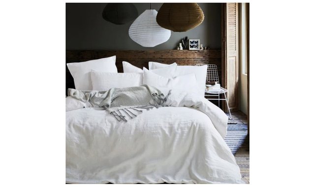 French Linen Star White Queen Duvet Cover Set 3 pcs