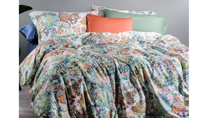 Our Monet cover and pillowcase set is a painterly floral paradise. Rich shades of greens, teal, and bordeaux blend to create a lush landscape of colorful impressionist flowers. The pillowcases are adorned with a shell button closure and the duvet cover has a zipper opening along one side.It is printed on our fine, 300 thread count, 100% combed cotton for softness and comfort. 300 threadcount 100% combed cotton sateen Hidden 60" zipper on side for easy removal & cleaning Machine Washable 4 Corner tie-downs matched with our duvets with 4 corner loops to keep everything in place.