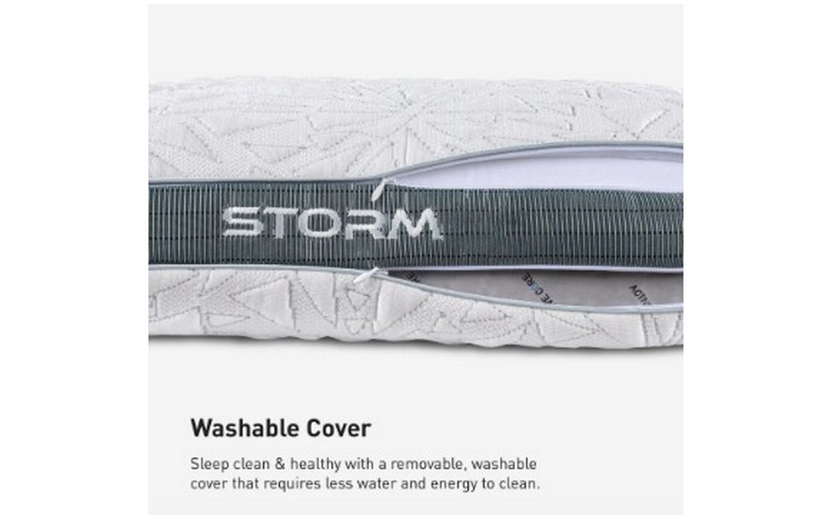Sleep cooler with the NEW Storm Performance® Pillow—redesigned for enhanced cooling and breathability. Storm features an instant-cooling cover, Air-X® Mesh and air vents for consistent ventilation, and an innovative hybrid design that features our adaptive React™ fill materials for the ultimate balance of comfort and support.