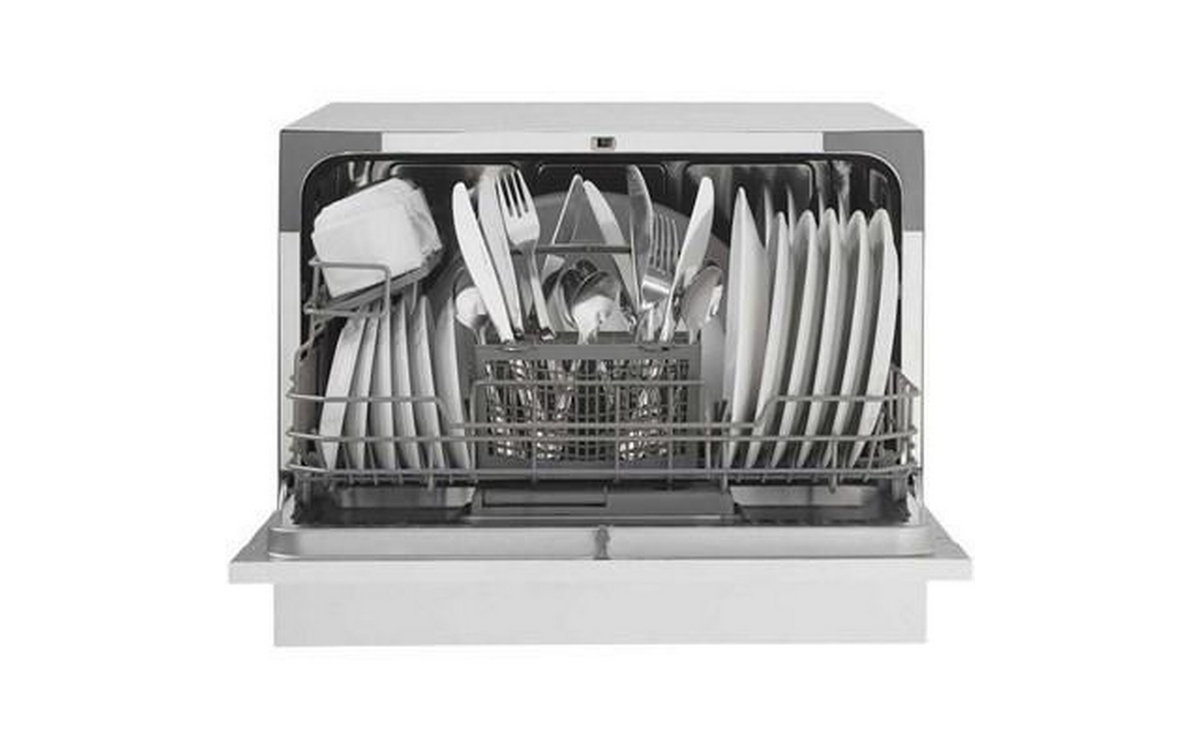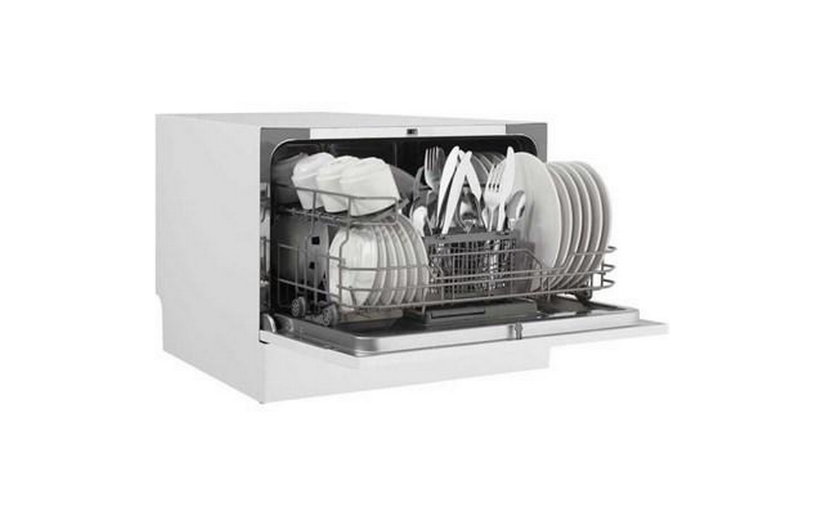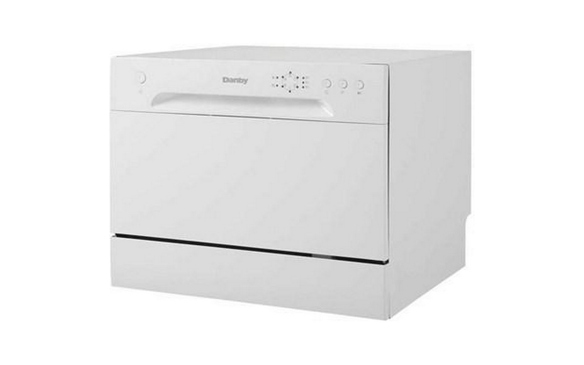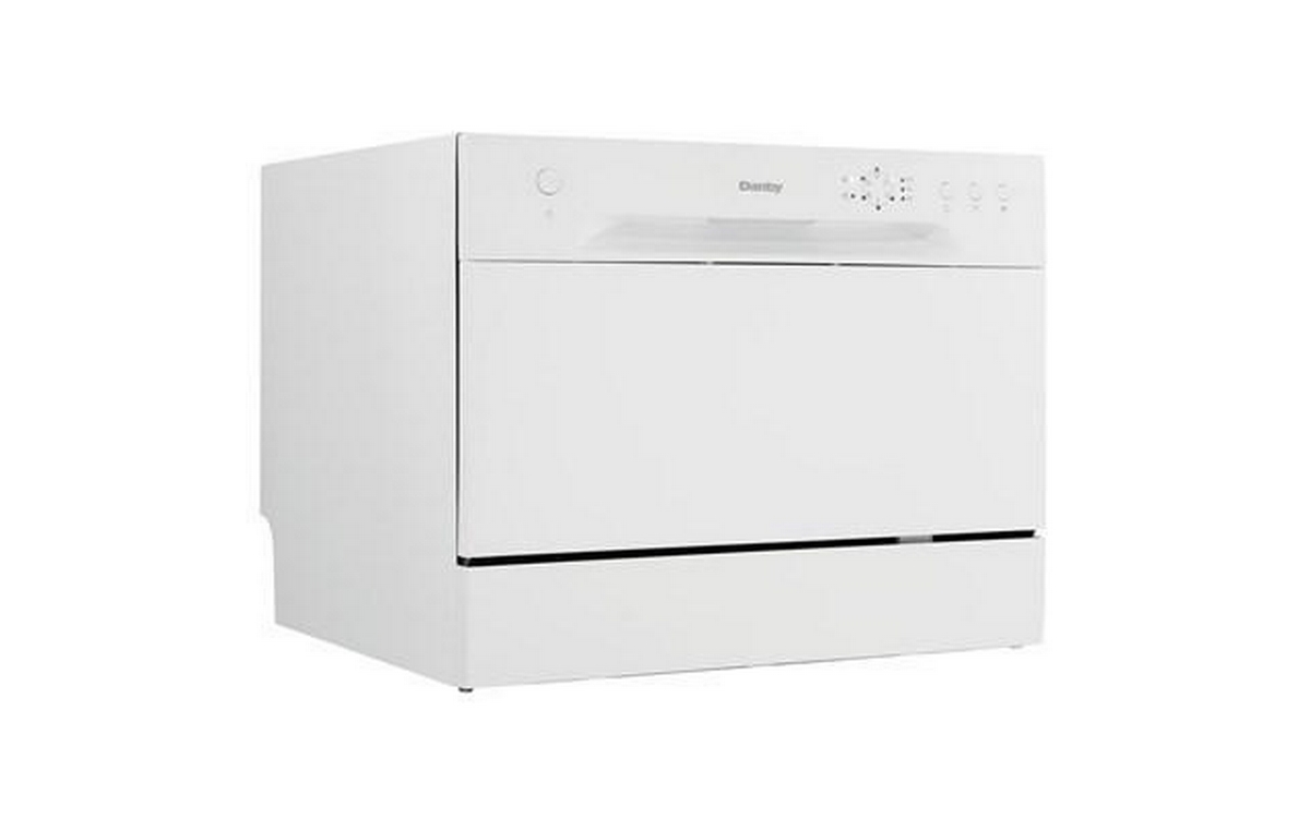 Danby counter-top dishwasher with a capacity of 6 place setting. This unit utilizes just 3.1 gallons (11.7 liters) of water for a normal cycle. It offers soak, glass, rapid, economy, normal, and intensive wash cycles.