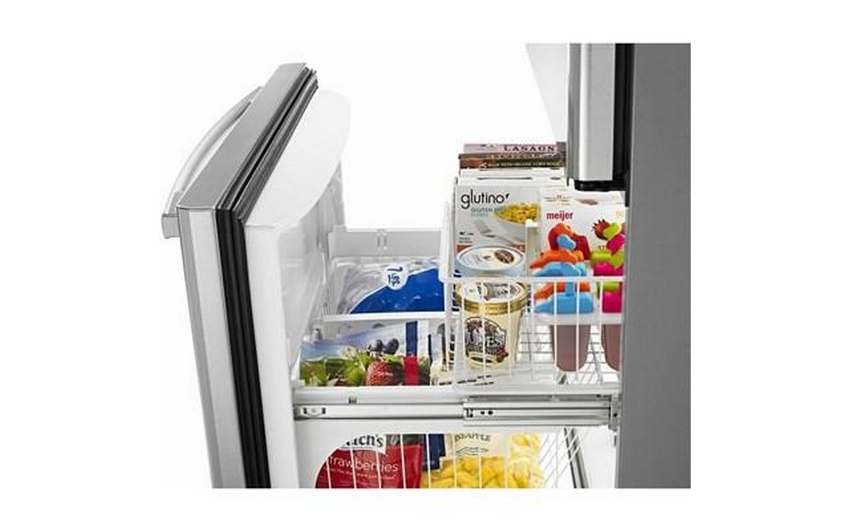 This 33-inch Wide Amana® Bottom-Freezer Refrigerator comes with versatile storage options like Adjustable Door Bins to help favorites stay right within reach. The EasyFreezer™ Pull-Out Drawer opens and closes with ease, so you can feel free to stock up after your last spree. And, like your very own salad bar, this model features Humidity-Controlled Garden Fresh™ Crisper Bins to help make sure you get first dibs on fruits and veggies.