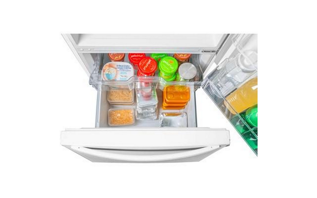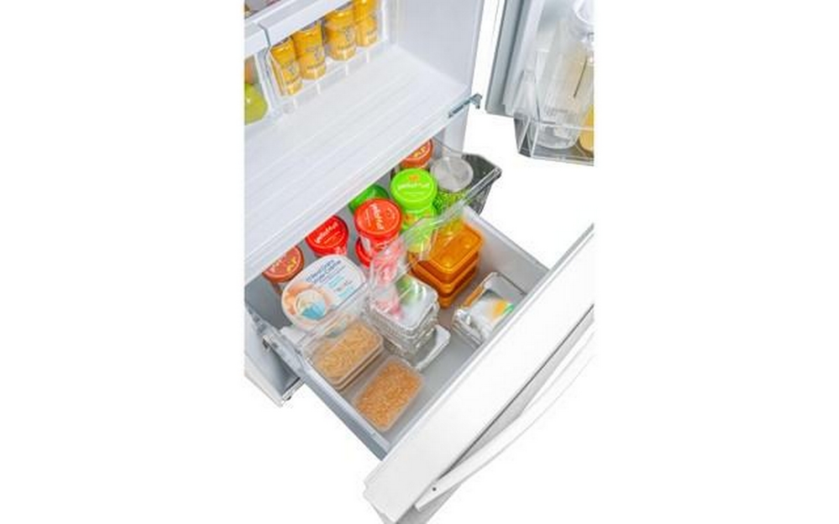 You’ll never have to worry about cooling space again with this 18.7 cubic foot bottom-mount refrigerator from Danby. The crisp white exterior blends seamlessly with any décor and the interior of the fridge and freezer is illuminated by bright white LED lights that make it easy to locate all your favorite food items. Built to be dependable, the electronic thermostat is located front and center and this model features frost-free fan forced cooling which ensures an even temperature throughout. Designed with versatility in mind, it is equipped with 2 adjustable glass shelves, 1 full and 3 half door shelves, 2 clear crisper drawers, and the fridge door can be adjusted for left or right-hand opening due to the smart reversible-hinge design. Additionally, the freezer compartment consists of 2 pull out drawers.