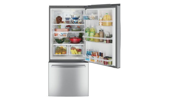 GE 21 cu ft Bottom-Freezer Refrigerator with Internal Ice Dispenser & Fingerprint-Resistant Stainless – GDE21EYKFS
