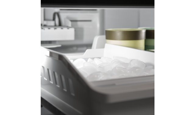 This GE 21 cu ft bottom-freezer refrigerator combines spacious capacity with a clean design. It features an internal ice dispenser for convenience while maintaining a sleek exterior. ENERGY STAR® certified, it offers two humidity-controlled drawers, a full-width pantry drawer, adjustable glass shelves, flexible door bins, progressive LED lighting, and a door alarm for added practicality.