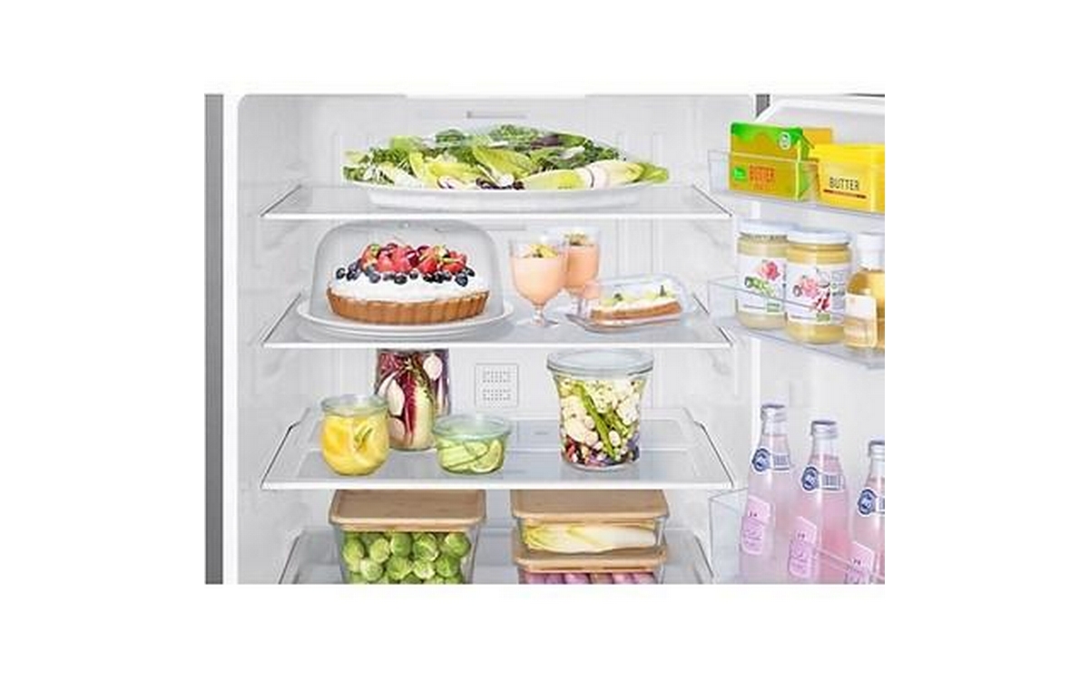 The Samsung 28" 15 cu. ft. Counter Depth Bottom Mount Refrigerator offers a sleek, space-saving design with All-Around Cooling for even temperatures and SmartThings AI Energy Mode for intelligent energy savings.