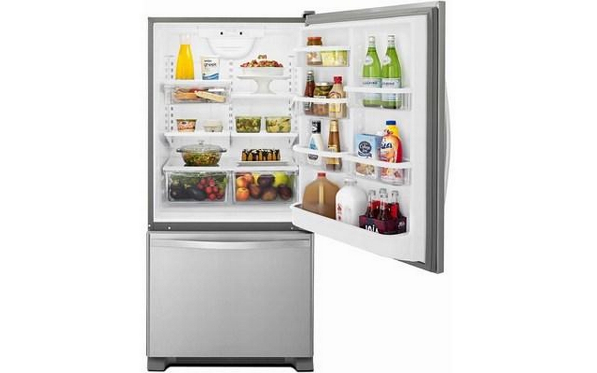 Storing all of your favorite fresh and frozen foods is easy with this 19 cu. ft. capacity bottom-freezer refrigerator featuring a convenient freezer drawer that places frozen items in close reach, making it easy to organize and find exactly what you need. You'll be able to keep food at the right temperature without wasting energy thanks to the Accu-Chill™ temperature management system, which uses built-in sensors to measure internal temperature and activates the compressor only when necessary. That food will look just as it should with energy-efficient LED lights, which cast a more natural light, while the FreshFlow™ produce preserver extends the freshness of produce for up to 4 days longer to keep fruits and vegetables tasting great.