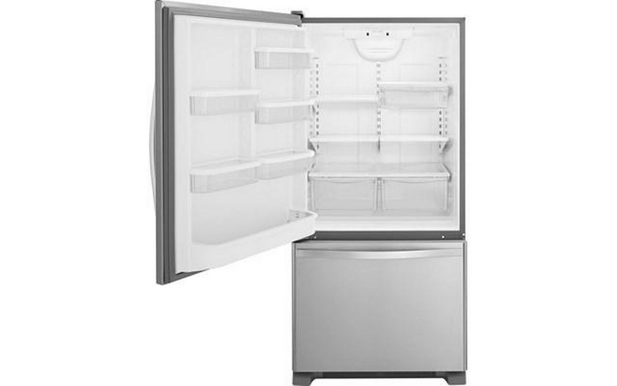 Storing all of your favorite fresh and frozen foods is easy with this 19 cu. ft. capacity bottom-freezer refrigerator featuring a convenient freezer drawer that places frozen items in close reach, making it easy to organize and find exactly what you need. You'll be able to keep food at the right temperature without wasting energy thanks to the Accu-Chill™ temperature management system, which uses built-in sensors to measure internal temperature and activates the compressor only when necessary. That food will look just as it should with energy-efficient LED lights, which cast a more natural light, while the FreshFlow™ produce preserver extends the freshness of produce for up to 4 days longer to keep fruits and vegetables tasting great.