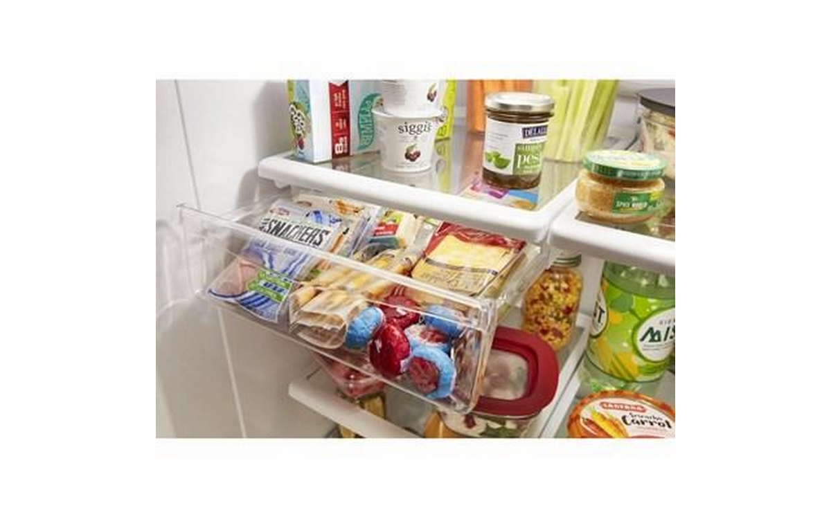 Conveniently store your family's essentials with this bottom mount refrigerator. Purposeful spaces like the deli drawer and FreshFlow™ produce preserver store everyday items in their ideal environment, while spillproof glass shelves and a fingerprint-resistant exterior simplify cleanup. Plus, interior LED lights will keep food looking as good as it tastes.
