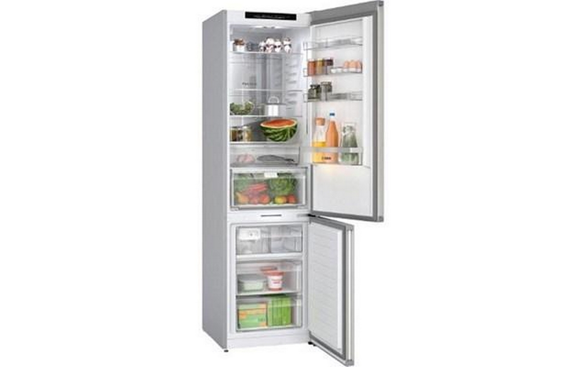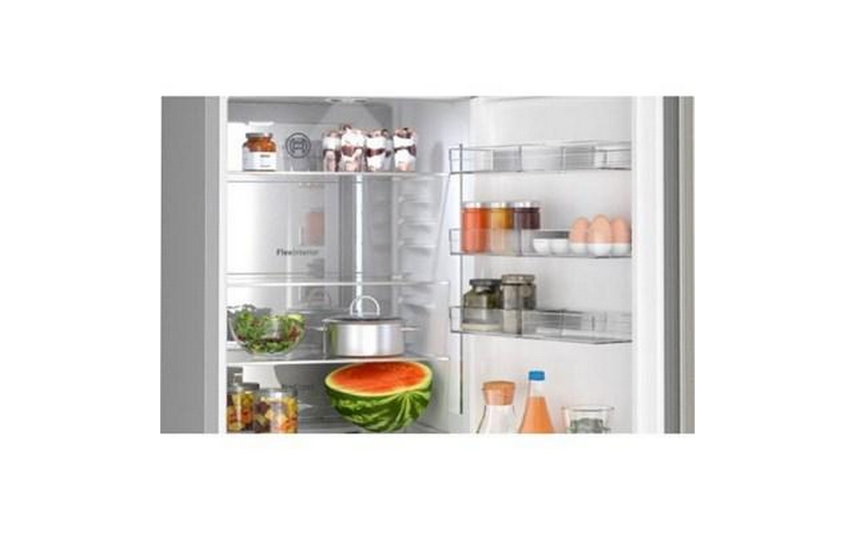 Bosch Serie 8, freestanding bottom freezer refrigerator features automatic defrost, a crisper drawer, glass shelves and a total capacity of 14.09 cu. ft.