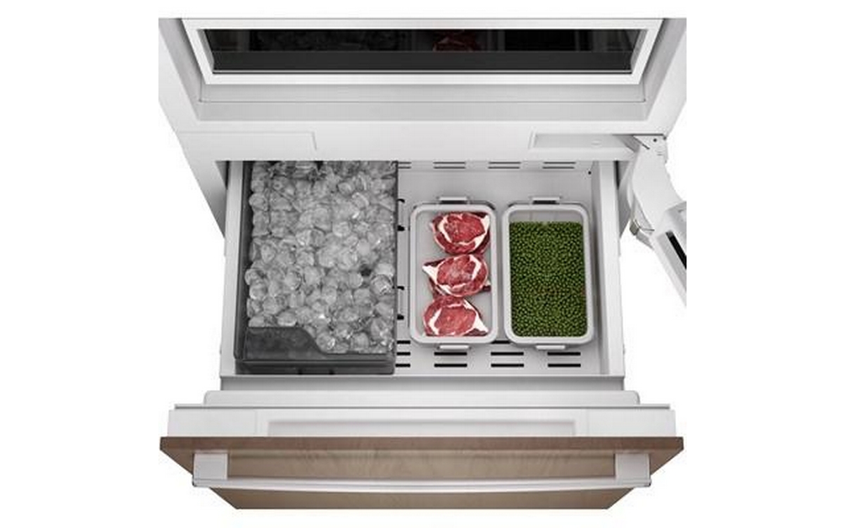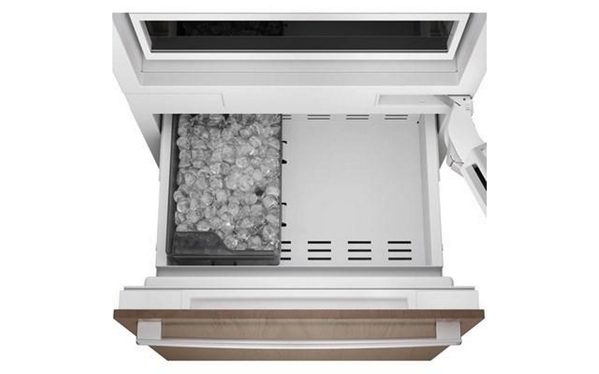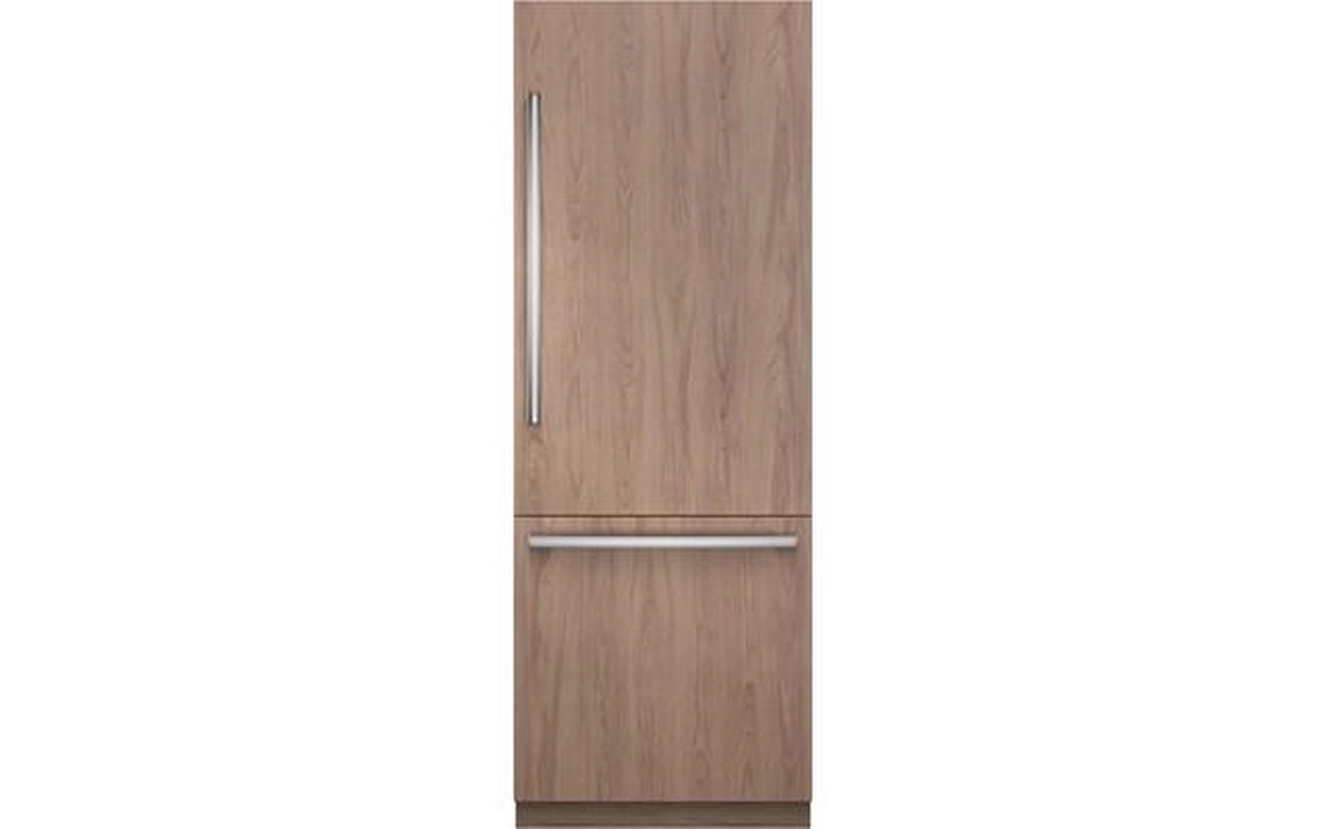 This panel ready 30-inch wide Bosch built-in bottom freezer-refrigerator features bright LED lighting, Home Connect™, an internal ice maker and a total capacity of 16.5 cu.ft.