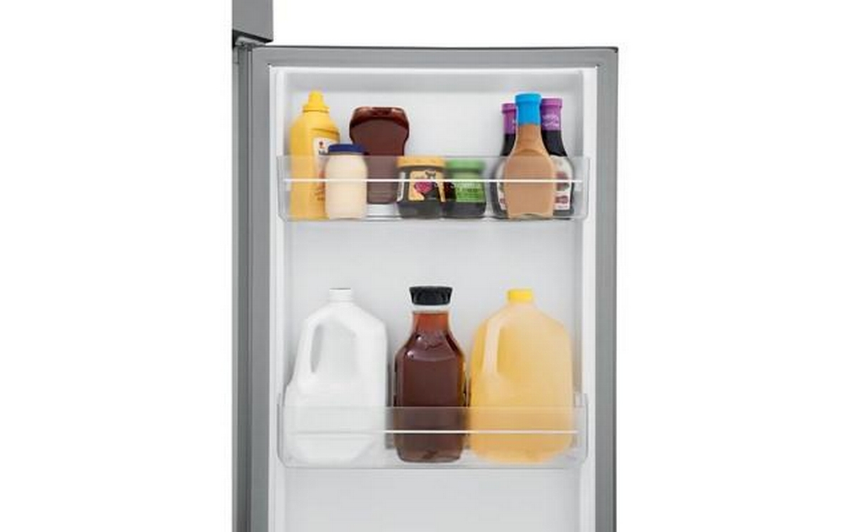 Clear refrigerator door bins offer additional storage and organization, with gallon door bin that provides convenient storage for larger containers.