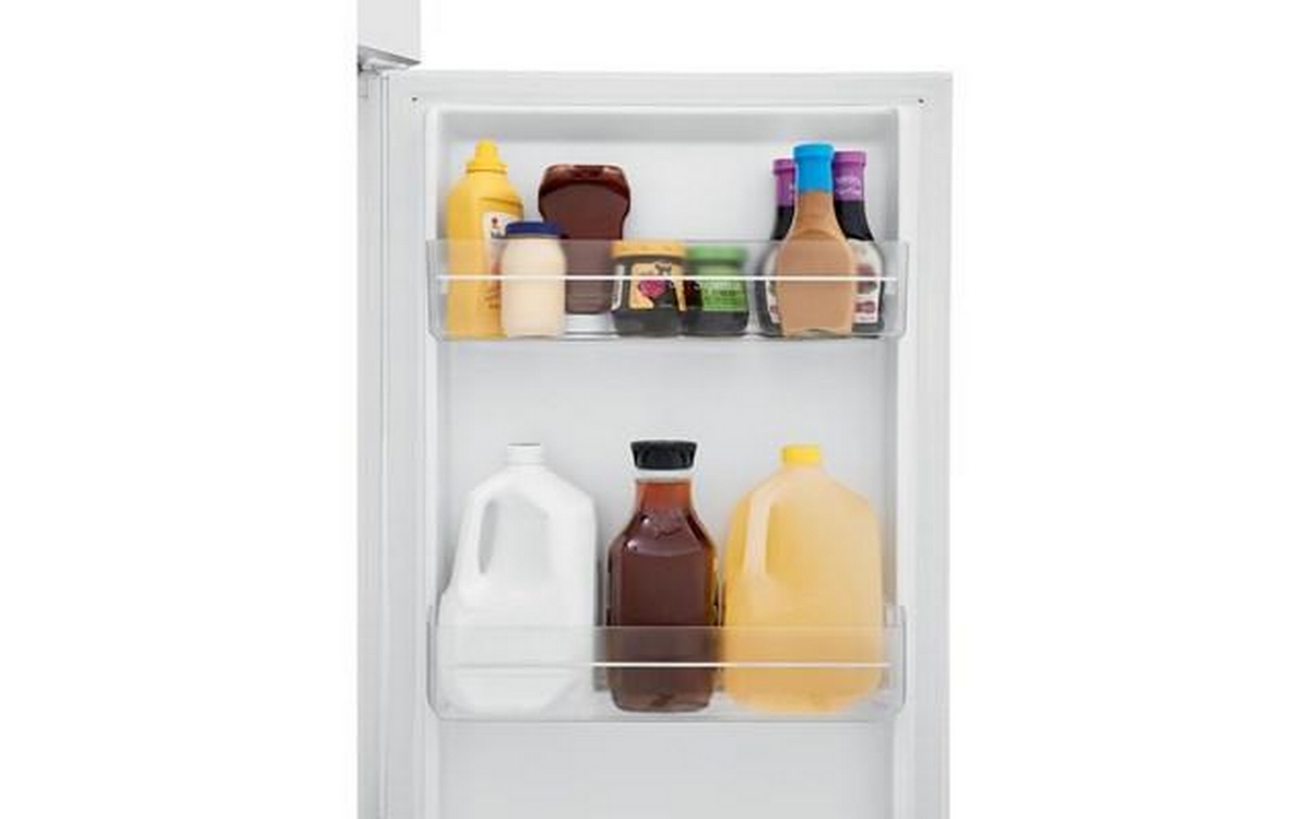 Clear refrigerator door bins offer additional storage and organization, with gallon door bin that provides convenient storage for larger containers.