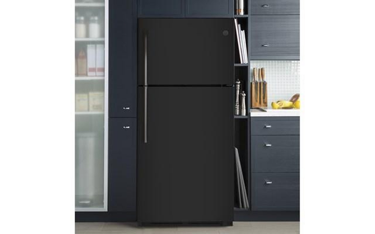 GE 30-Inch, 18 Cu. Ft. Top Freezer Refrigerator With Reversible Door - GTE18FTLKBB