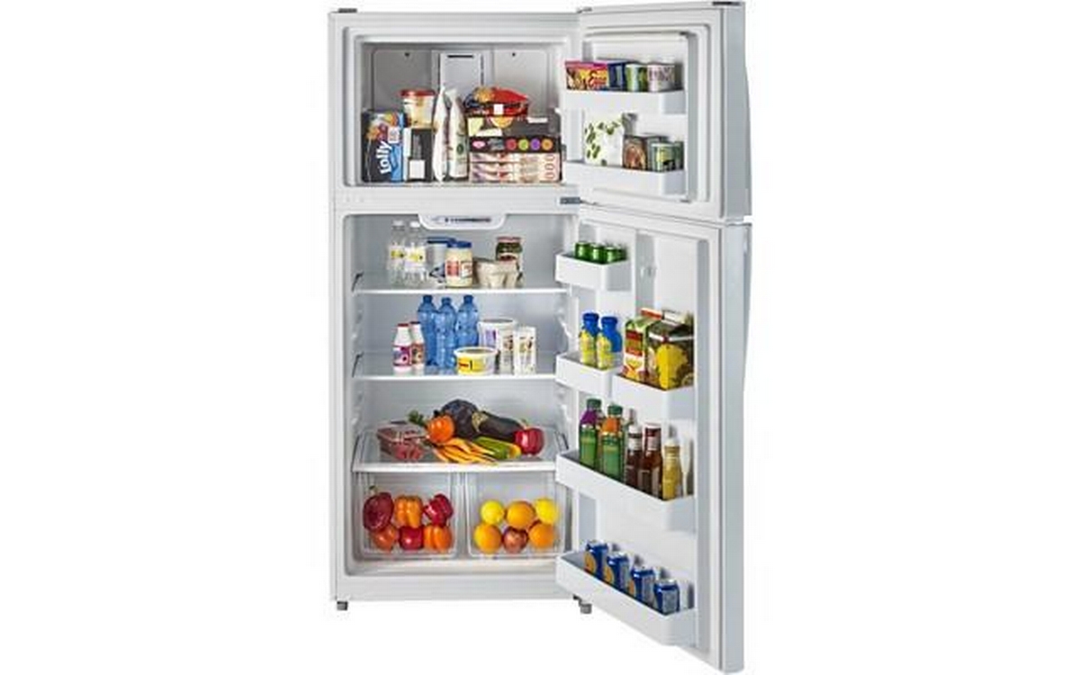 Moffat offers an energy star qualified 30" top-freezer no-frost refrigerator with a total capacity of 18 cu. ft. This white appliance features upfront temperature controls, 2 adjustable fruit and vegetable crispers and a clear dairy compartement. Also, the refrigerator provides a NeverClean™ condenser and an ice tray.