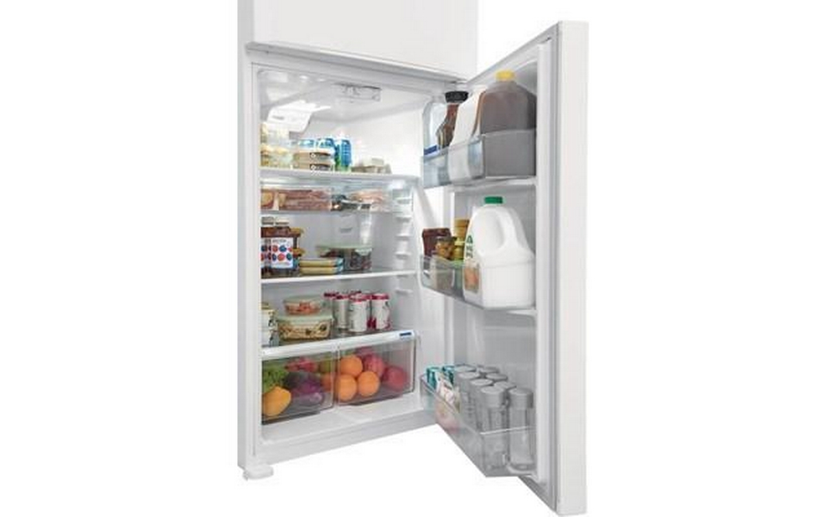 This 30-inch wide Frigidaire frost-free top freezer refrigerator features LED lighting, deli drawer and gallon door bins.