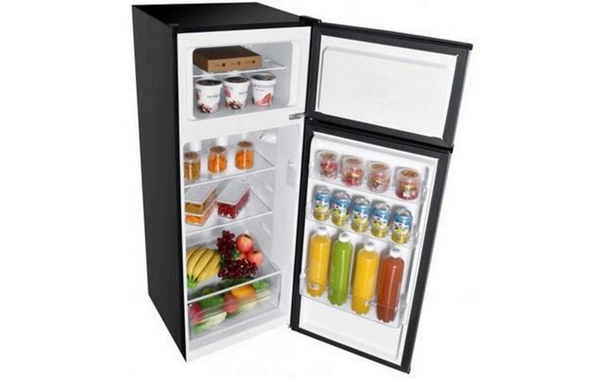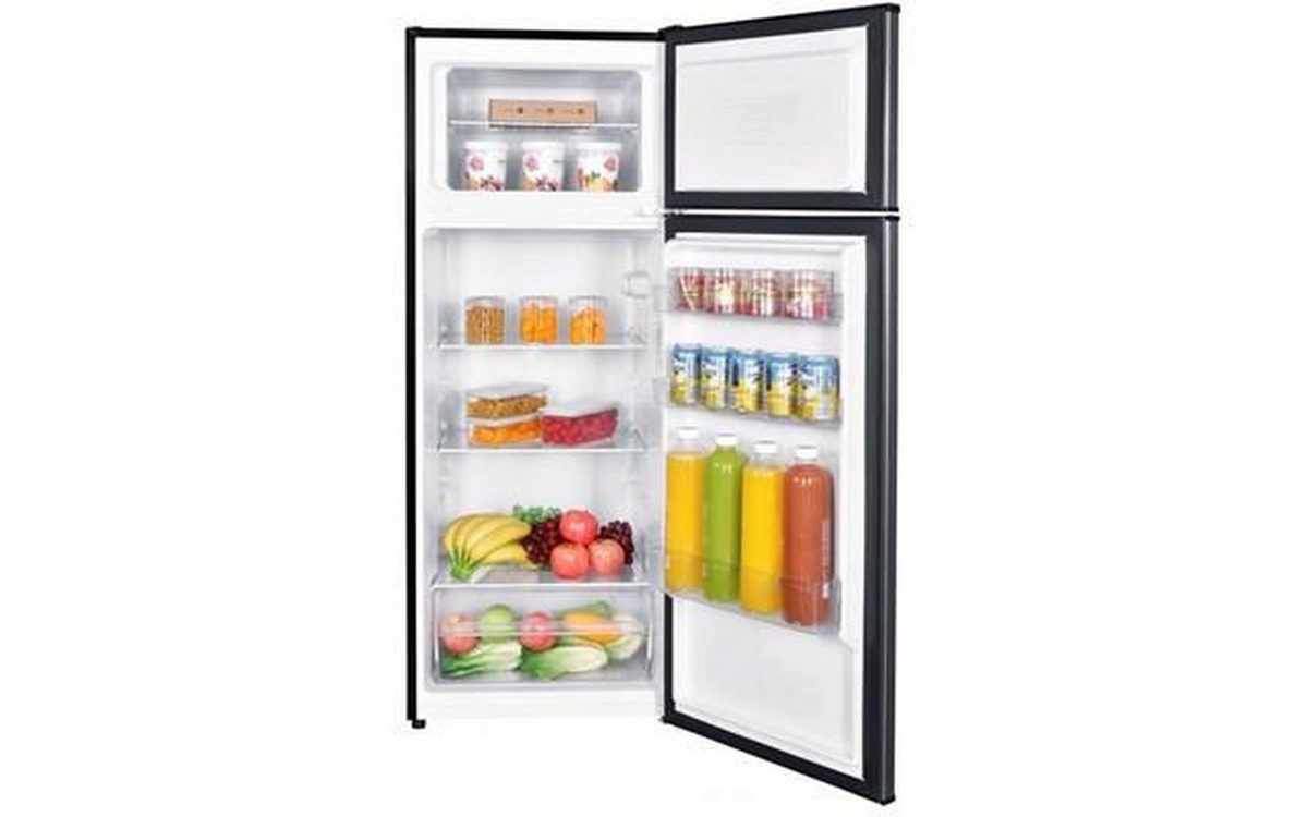 This 7.4 cu. ft. (206 liters) mid-size refrigerator from Danby features two adjustable glass shelves in the fridge, and a top-mount freezer section with one adjustable wire shelf. It’s the perfect addition to any home, cottage, mini bar, or even the office! This model also comes with a transparent crisper bin to keep all your favorite vegetables and fruit fresh. Its reversible door hinge allows for a right or left-hand swing so you can fit this unit in almost any space, while its three door shelves and tall bottle storage (2 liters or 1 gallon) make it easy to keep your fridge organized.