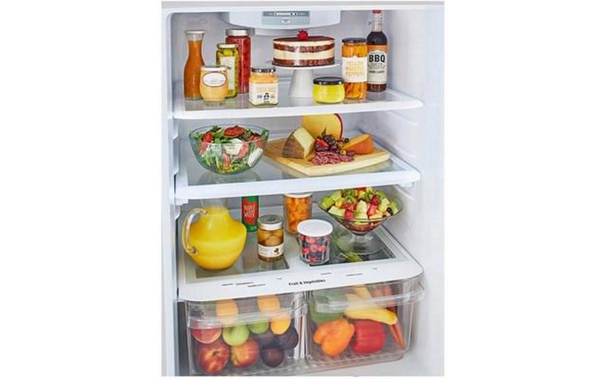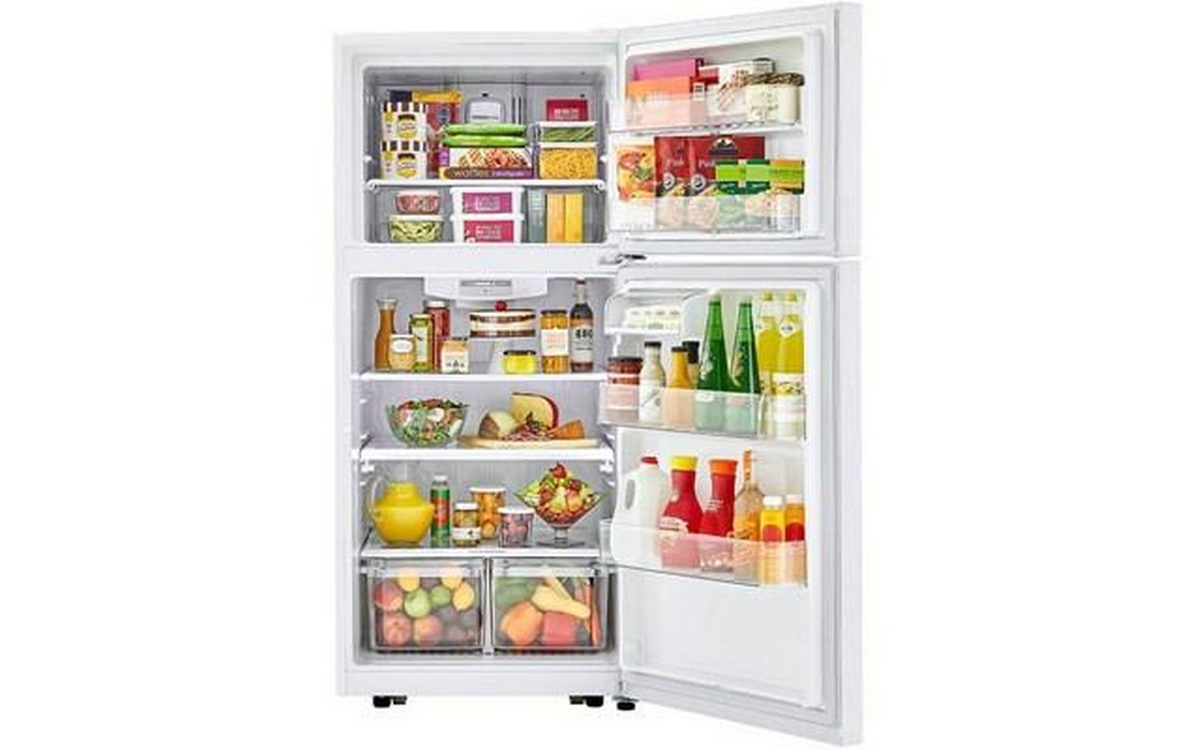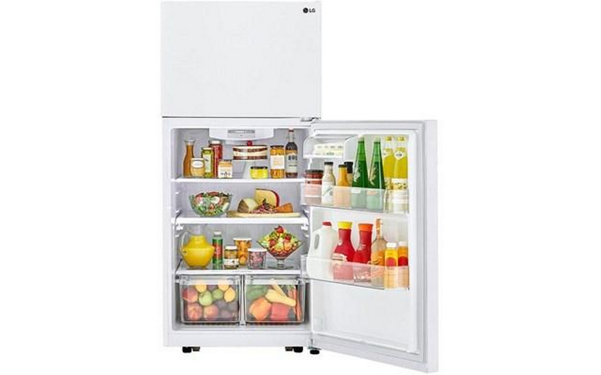 This 30-inch wide LG top freezer refrigerator features the Smart Diagnosis™ technology, humidity-controlled crispers, the Multi-Air Flow™ system and a 20.2 cu. ft. capacity.