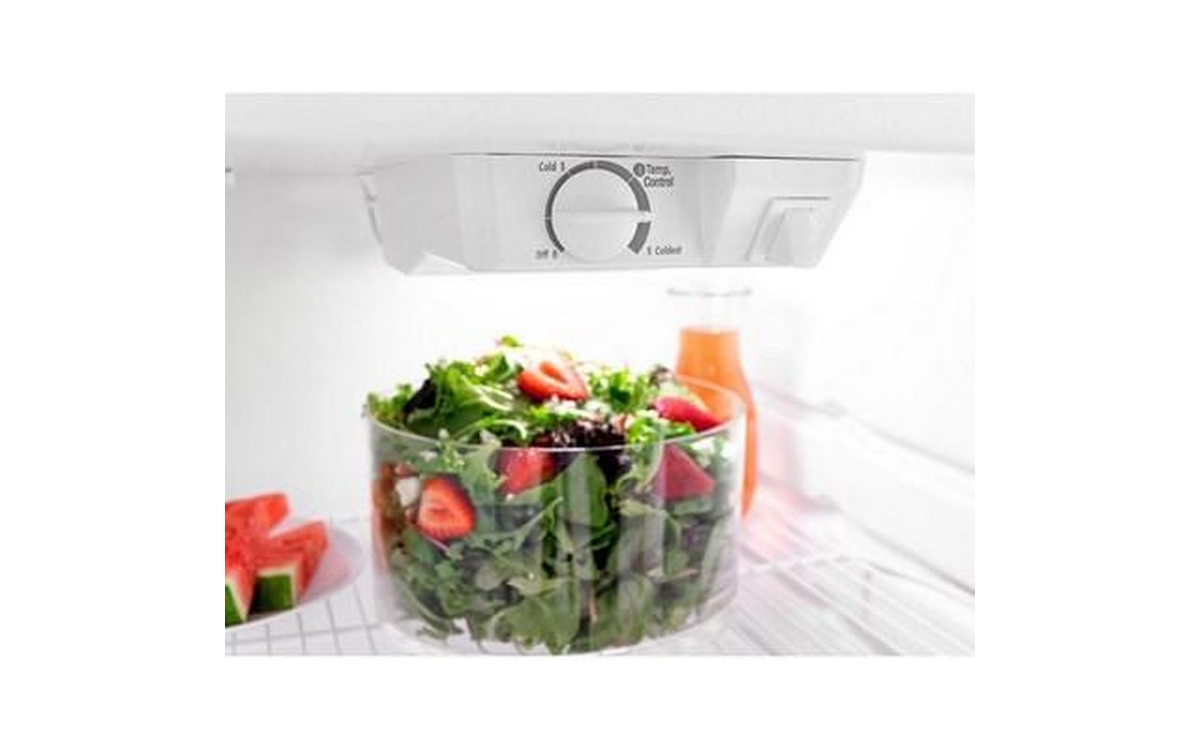 This 14 Cu. Ft. Capacity, 28-inch Amana® Refrigerator is available with an Optional Automatic Icemaker Kit so you can forget the ice trays. A Dairy Bin and Full-Width Crisper Drawer make sure favorites are always ready to grab. And the Up-Front Temperature Control System lets you change temps without having to reach over food at the back of the fridge.