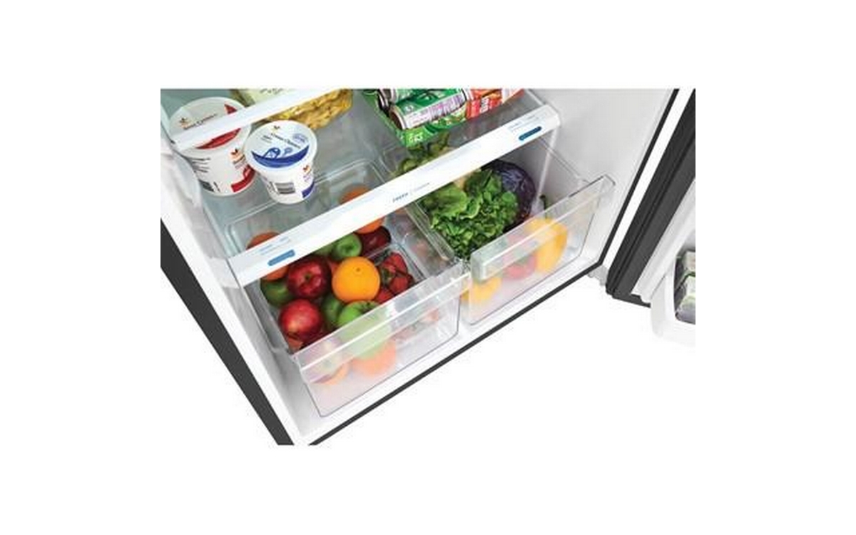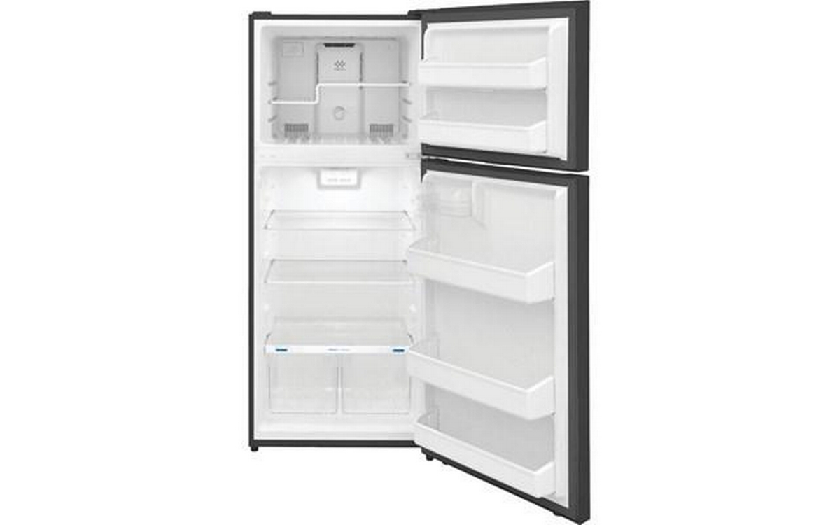 Frigidaire top freezer refrigerator features LED lighting, automatic defrost, crisper drawers, adjustable shelves and a total capacity of 17.6 cu.ft. Ice maker ready (Sold separately).
