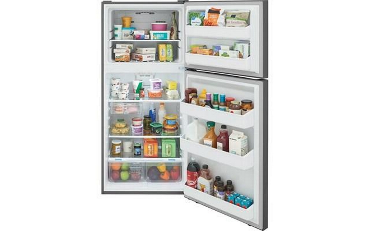 The Frigidaire 18 cu. ft. Top Freezer Refrigerator is garage ready and designed for reliable performance in any environment. It features a humidity-controlled crisper drawer to keep produce fresh and an EvenTemp™ Cooling System for consistent temperature throughout.