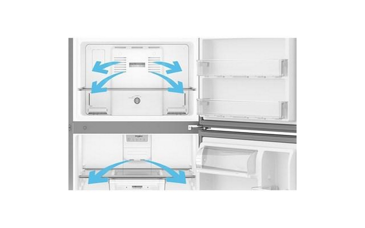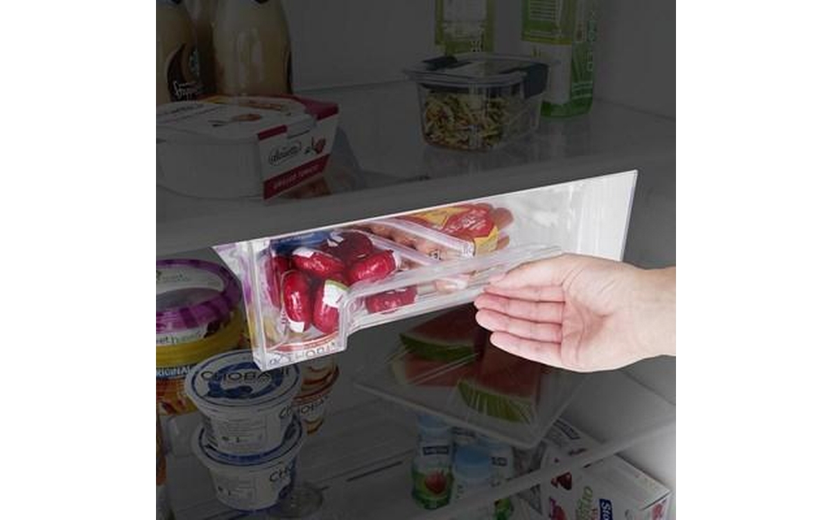 This Whirlpool® 29.5-inch Wide Top Freezer refrigerator features Total Coverage Cooling to help prevent cold spots. The Flexi-slide™ Deli Drawer moves side to side to make space for more. Designed for use in hot or cold spaces, it stays cool in temperatures ranging from 38°F (3.3 °C) to 110°F (43.3 °C). The FreshSpace™ Humidity Control Crispers balance humidity to help keep produce fresh and Adjustable Door Bins shift to fit your day.