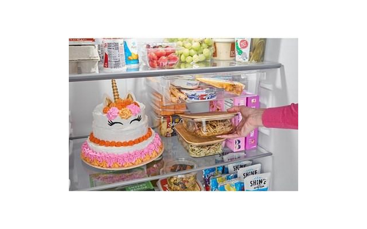 This Whirlpool® 29.5-inch Wide Top Freezer refrigerator features Total Coverage Cooling to help prevent cold spots. The Flexi-slide™ Deli Drawer moves side to side to make space for more. Designed for use in hot or cold spaces, it stays cool in temperatures ranging from 38°F (3.3 °C) to 110°F (43.3 °C). The FreshSpace™ Humidity Control Crispers balance humidity to help keep produce fresh and Adjustable Door Bins shift to fit your day.