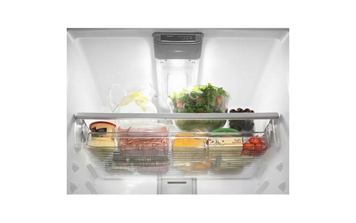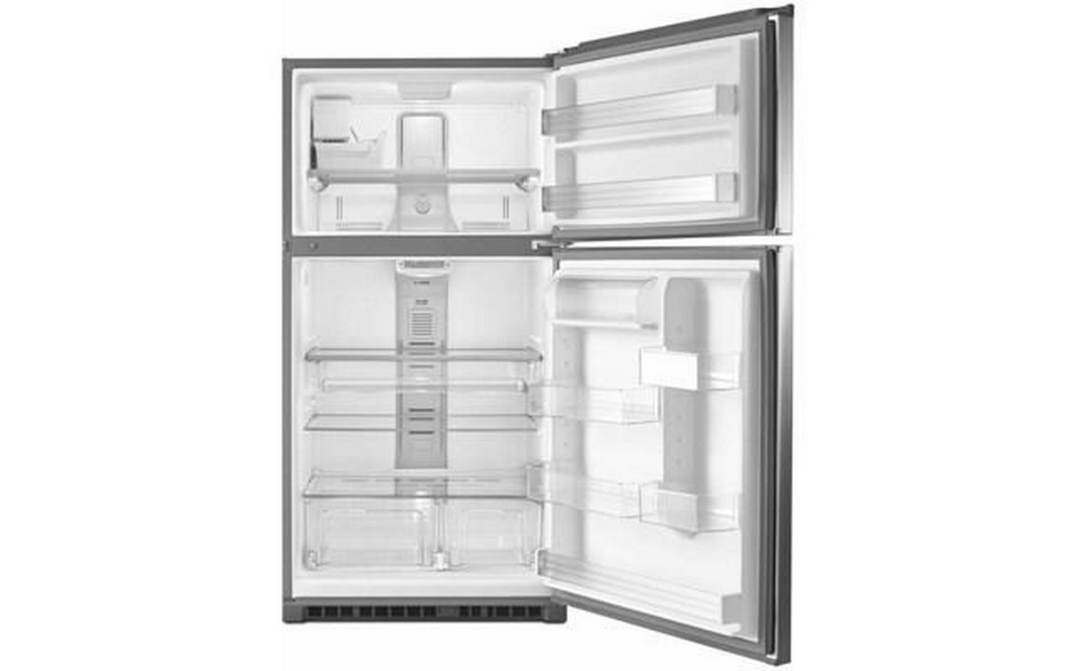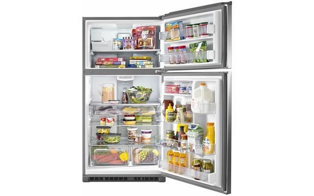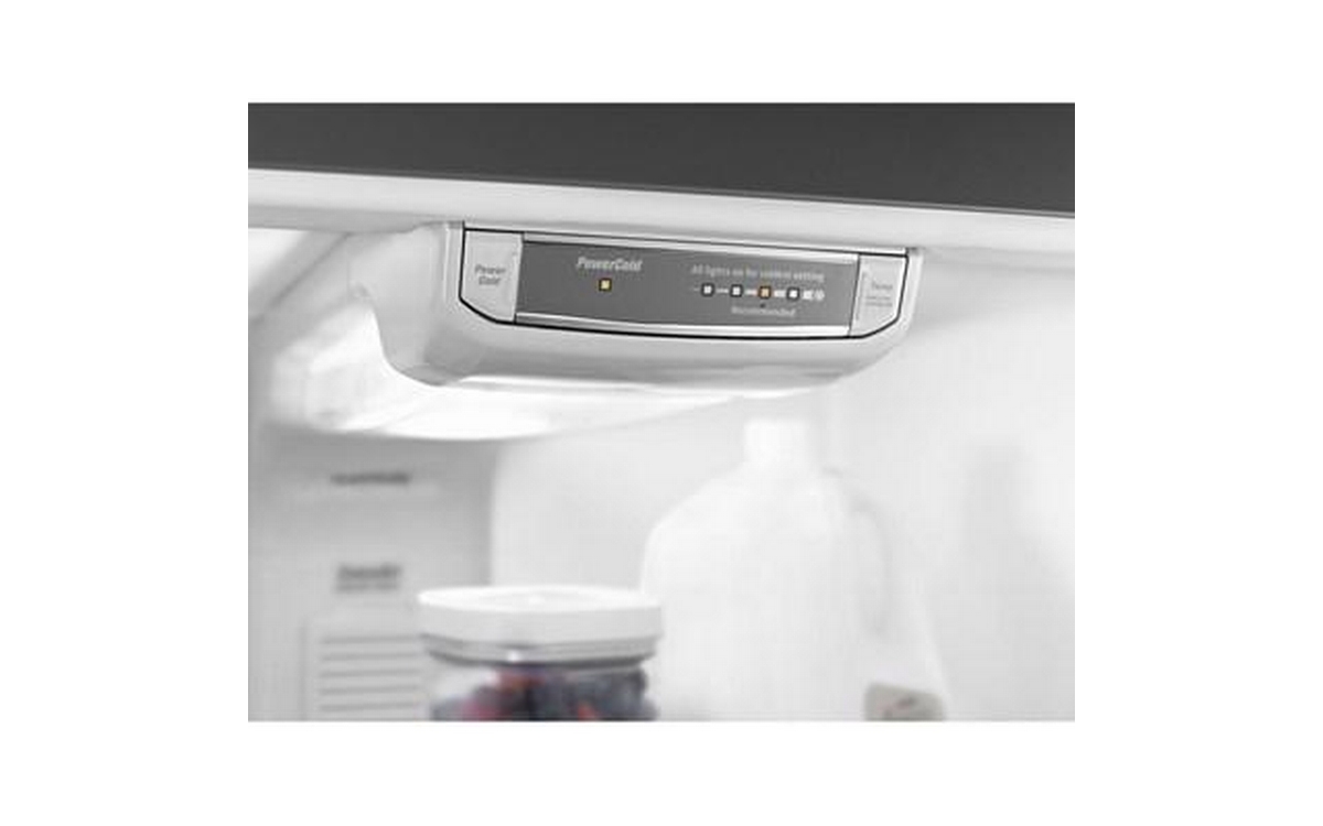 Maytag® top-freezer refrigerators are built to hold the cold with features like stainless steel handles that embody the heavy-duty strength Maytag is known for. The EvenAir™ cooling tower keeps food cool without breaking a sweat, while the PowerCold® feature chills down the refrigerator to help keep everything cool — even if the whole family's been browsing with the door open. The electronic temperature controls are even up front to make maintaining the coolness of your refrigerator easy with the touch of a button. Plus, it’s available in Fingerprint Resistant Stainless Steel to keep this fridge looking great. Inside this 21 cu. ft. top-freezer refrigerator you'll also find BrightSeries™ LED lighting. It casts a bright, white light and uses less energy than incandescent bulbs.