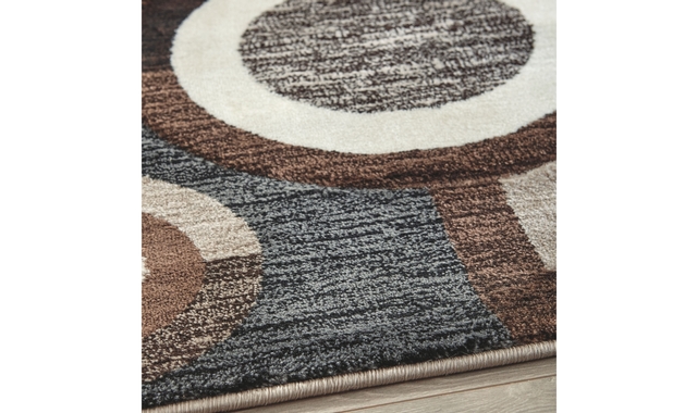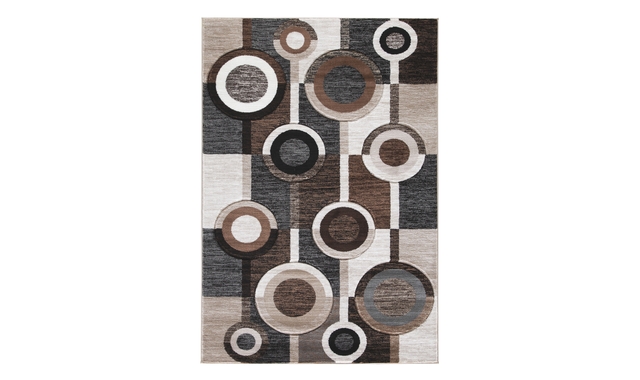 Talk about bringing modern pop to a space. With its multilayered geometric design and pleasing palette of black, brown and cream tones, this area rug is decidedly bold without coming on too strong.