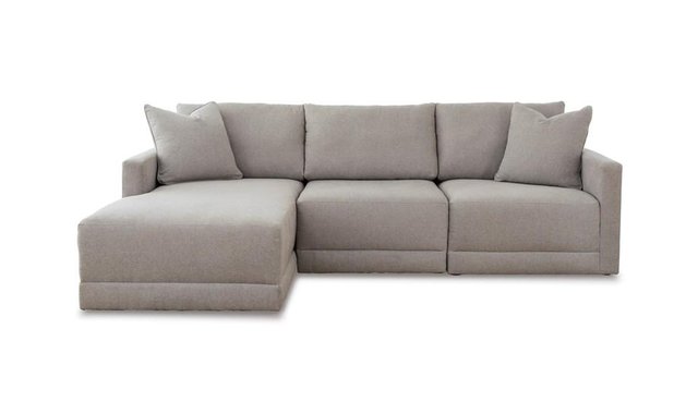 Searching for seating that expertly harmonizes form and function? This sectional with chaise has you covered. Making a sleek statement in spaces from transitional to modern, its neutral upholstery brings an airy, upscale feel to the clean-lined silhouette. And the sectional's modular design aligns with your busy lifestyle, enabling endless possibilities for contemporary comfort.