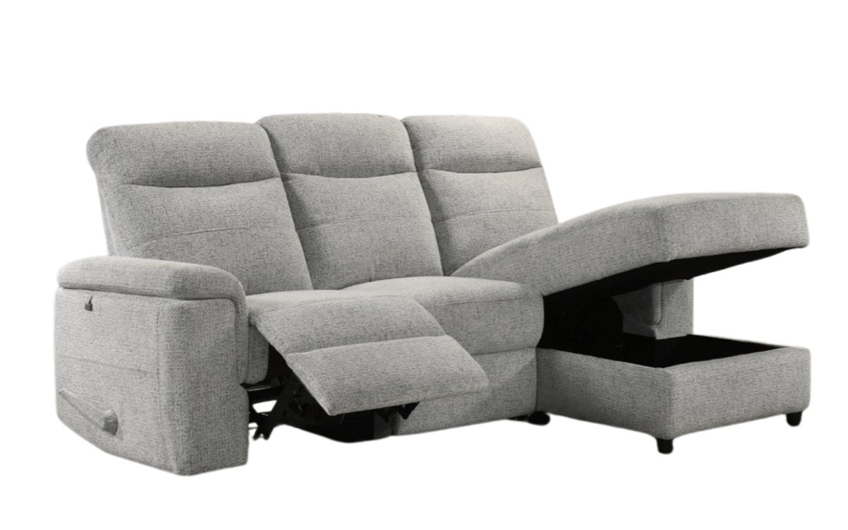 This reclining sofa with chaise lounge and storage compartment combines comfort and functionality. With its relaxing seat, generously padded backrests, and sleek design, the Halifax model is perfect for your moments of relaxation with family or friends.