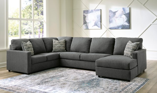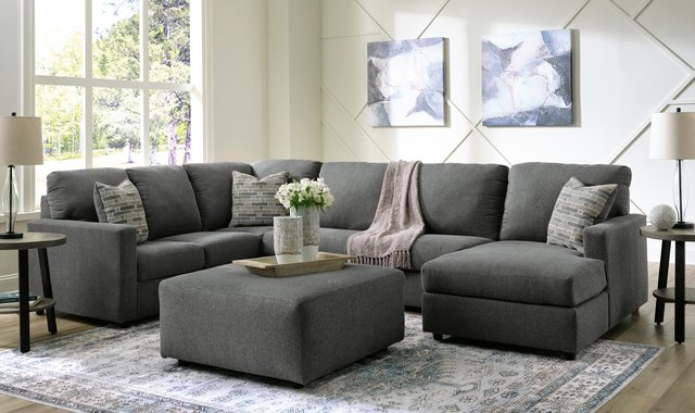 Contemporary fashion, meet superior form. This sectional with chaise is strikingly streamlined with its track arms. Cozy cushions invite superior relaxation, while handsome charcoal upholstery speaks to tried-and-true modern color palettes. Simply kick back, relax and settle into the calm of your curated space.
