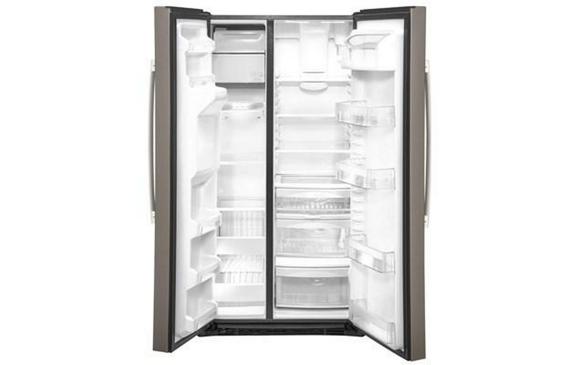 This 36-inch wide GE, side-by-side refrigerator is equipped with an external water and ice dispensing system. This model also features showcase LED lighting, fresh food multi-level drawers and water filter.