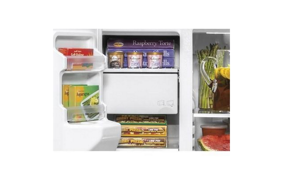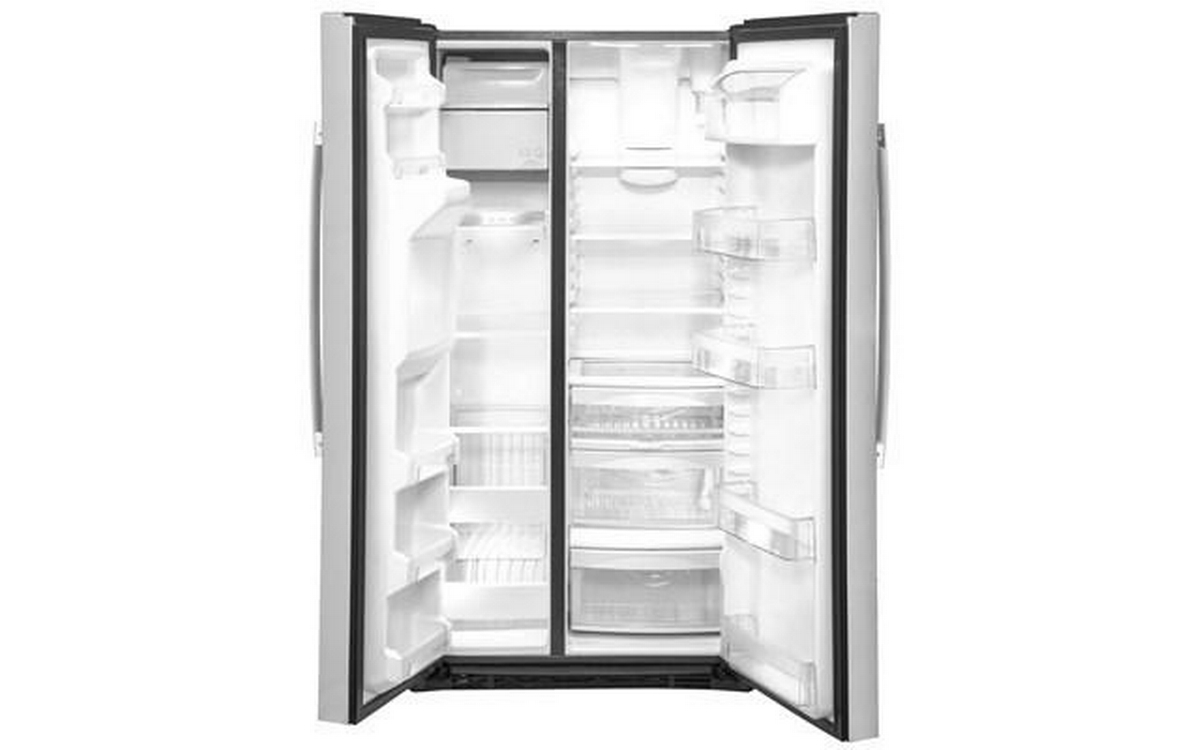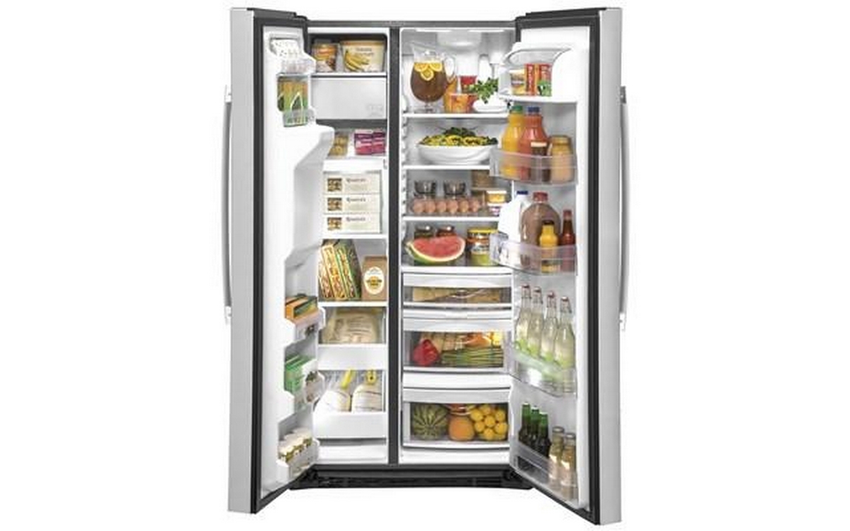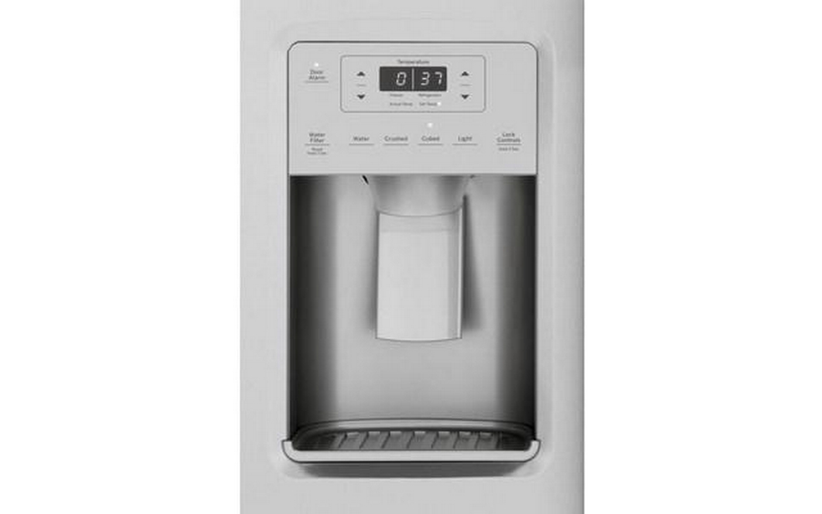 This 36-inch wide GE, side-by-side refrigerator is equipped with an external water and ice dispensing system. This model also features showcase LED lighting, fresh food multi-level drawers and water filter.