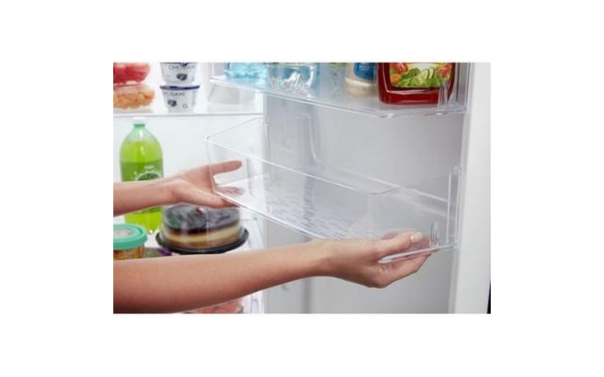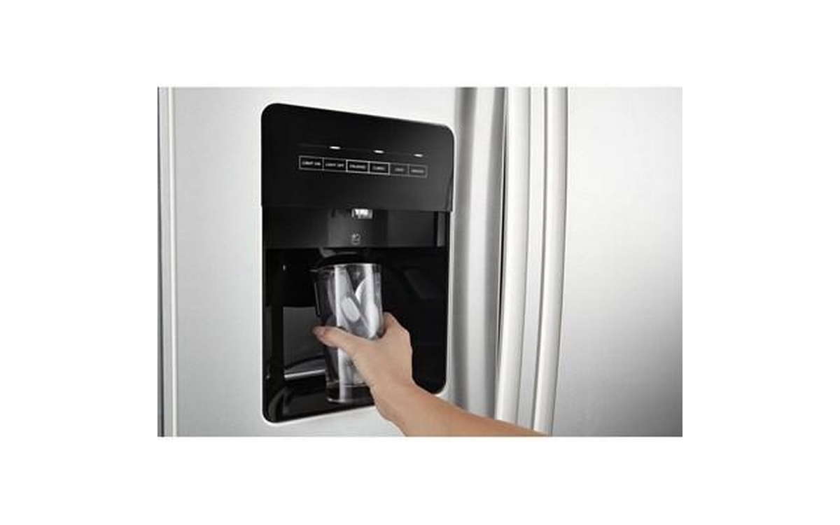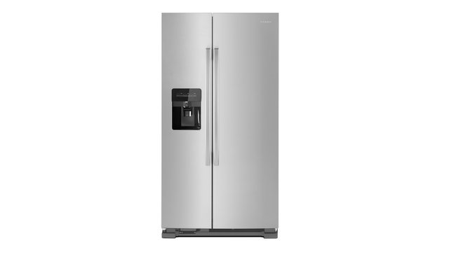 This 33-inch Amana® Side-by-Side Refrigerator is great for smaller spaces, giving you the right amount of storage room. This 21 Cu. Ft. refrigerator with ice and water dispenser lets you grab fresh H2O with a Dual Pad Dispenser with EveryDrop™ Water Filter. Easily set temps with Electronic Temperature Controls. And big items fit in the Gallon Door Storage Bins.
