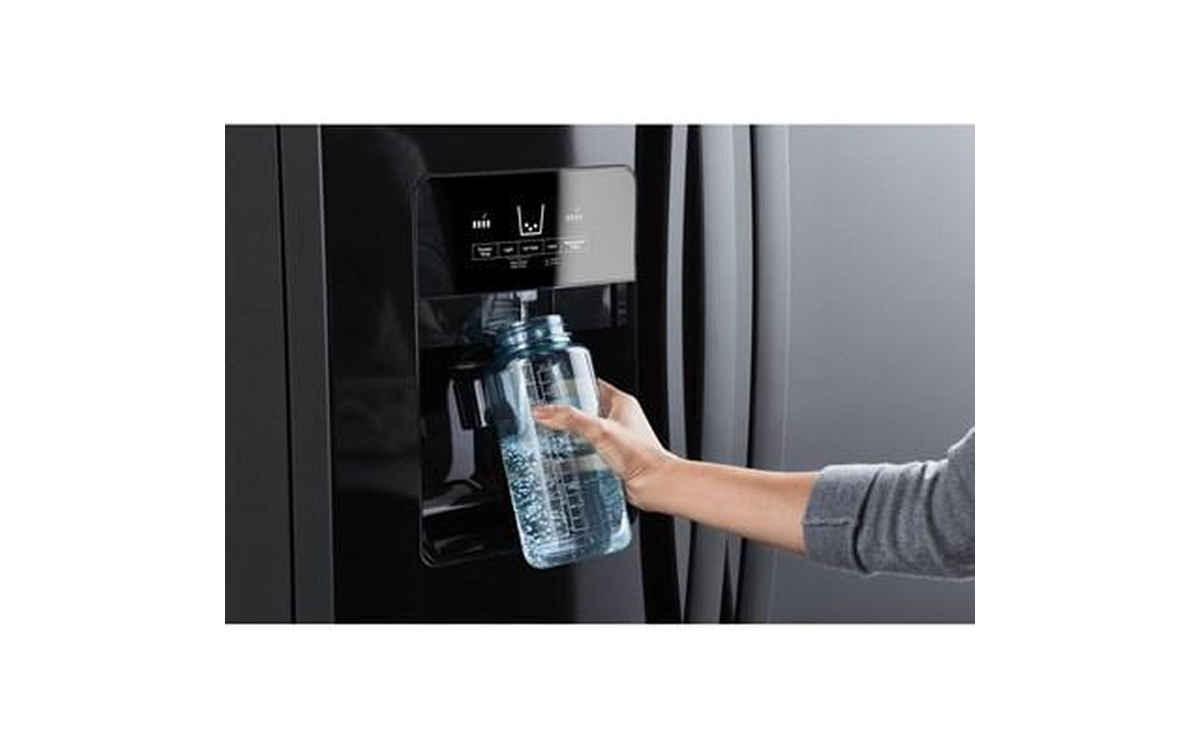 Fit and find it all with purposefully-designed storage spaces in this ENERGY STAR® certified refrigerator. Get increased loading flexibility with adjustable gallon door bins. The refrigerator with ice and water dispenser lets you access ice and water without opening the door while LED lights keep food looking as good as it tastes.