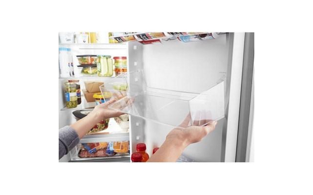 Get purposefully-designed storage spaces for items you use most in this ENERGY STAR® certified refrigerator. Adjustable gallon door bins move anywhere for increased loading flexibility. The refrigerator with ice and water dispenser lets you access ice and water without opening the door. LED lights in the ENERGY STAR® certified refrigerator also keep food looking as good as it tastes.
