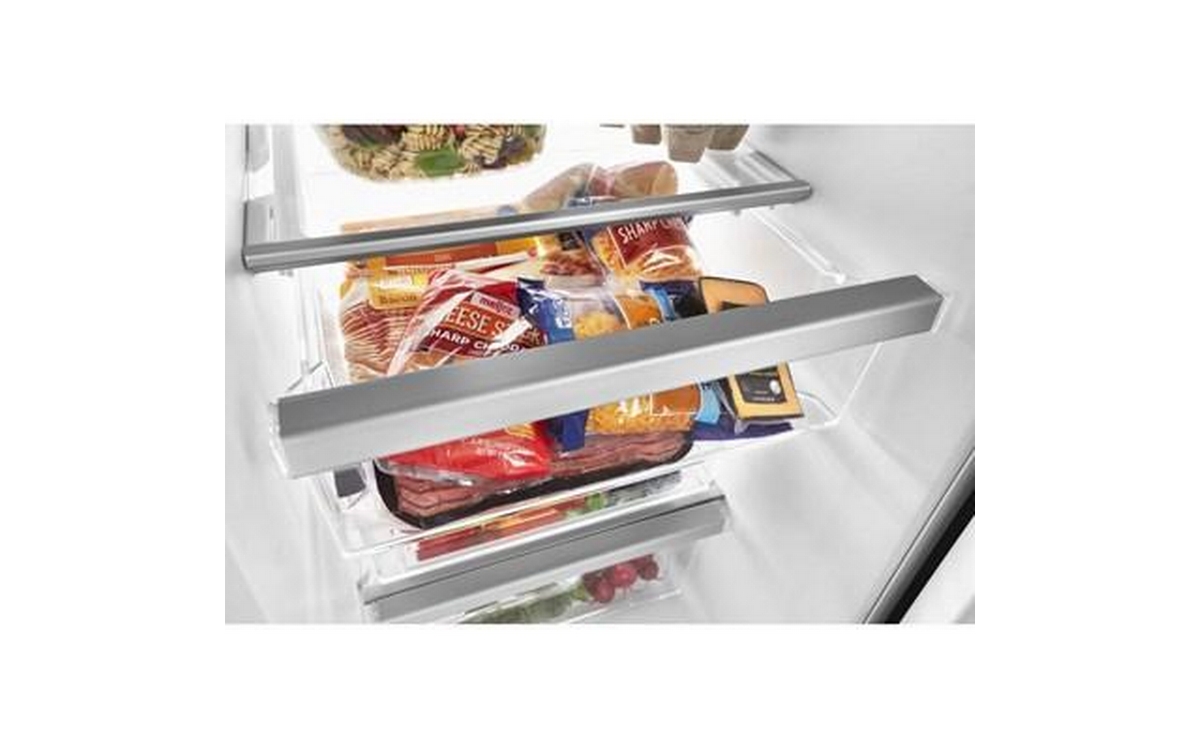 Get purposefully-designed storage spaces for items you use most in this side-by-side refrigerator. An in-door can caddy frees up shelf space while frameless glass shelves in the refrigerator with ice and water dispenser lets you store more items on each shelf for loading flexibility. The deli drawer refrigerator gives you plenty of space to store meat and cheese, too.
