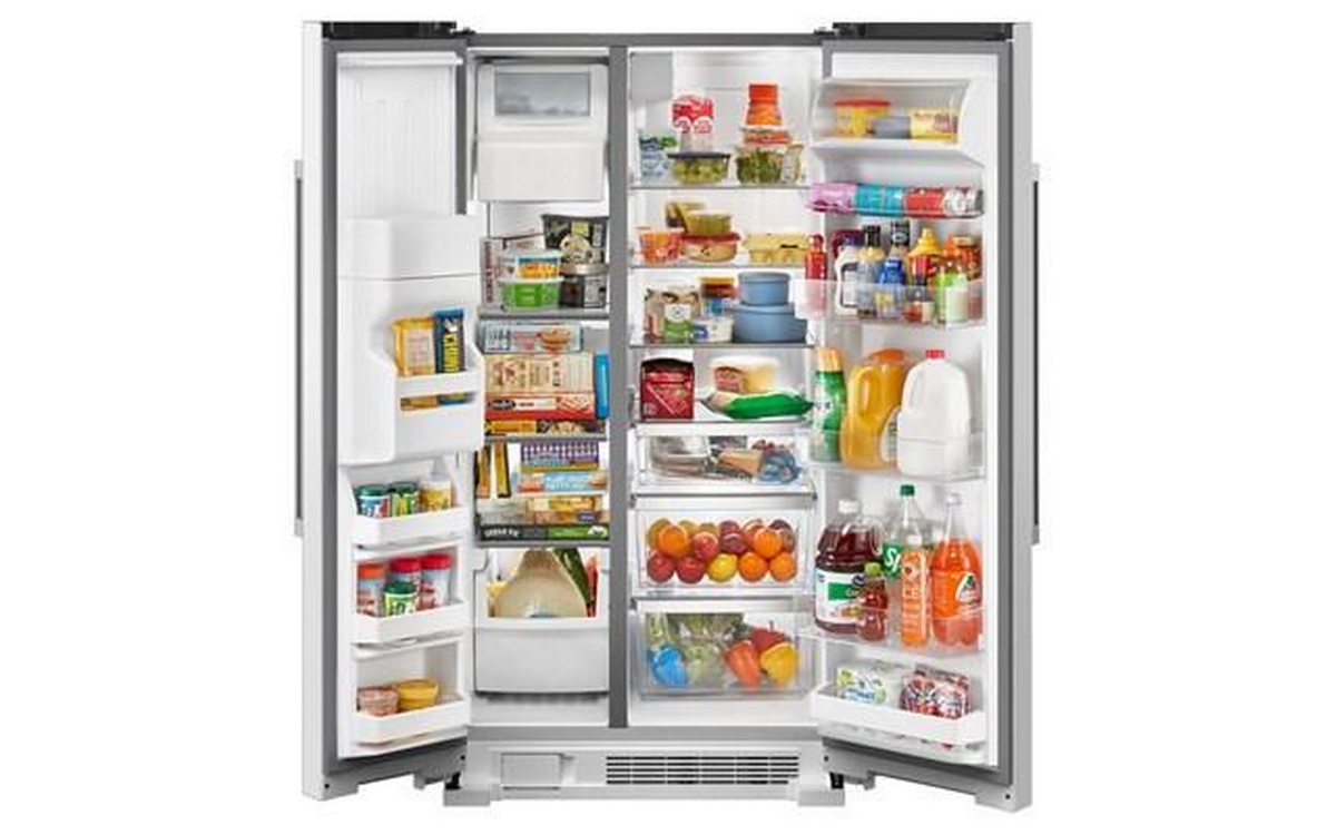 This side-by-side refrigerator is built for large capacity cooling. The gallon door bins maximize space so you can fit even more on the metal shelf and frameless glass shelves. This side-by-side refrigerator with water and ice dispenser gives you easy access to water and ice when you need it. With a 10-year warranty on the compressor, this fridge has performance that lasts.