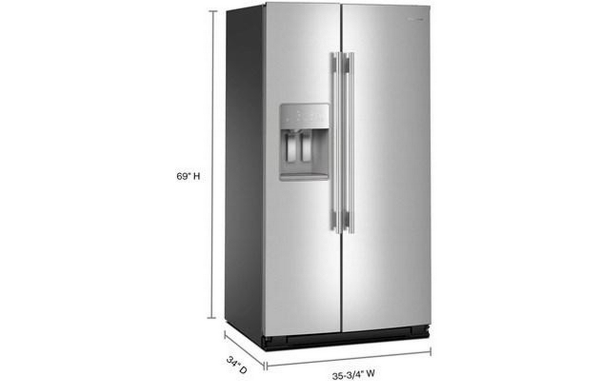The KitchenAid 36-Inch Side-by-Side Refrigerator offers a spacious 28 cu. ft. capacity, providing ample storage for all your fresh and frozen items. Equipped with an exterior ice and water dispenser, it ensures quick and easy access to chilled water and ice without opening the door. The sleek design and modern features make this refrigerator an ideal choice for any kitchen, blending convenience and style with efficient performance.